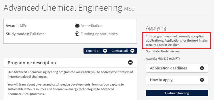 帝國理工商學院在8月底就已經率先開放碩士網申,其他學院在10月2日開放碩士網申通道。